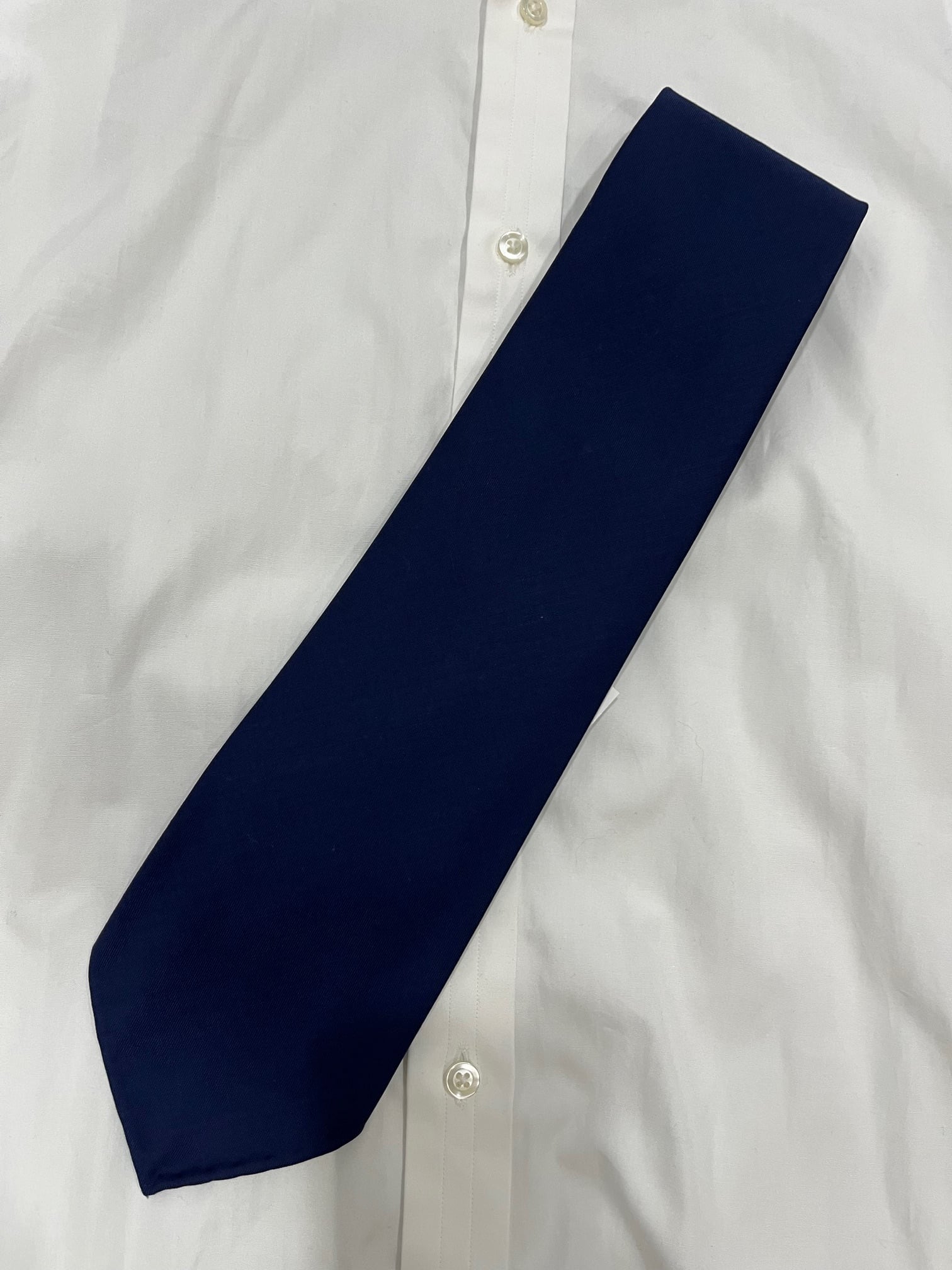こちらはネービーソリッドで一番万能なベーシックなネクタイをウールにしたのがポイントです。