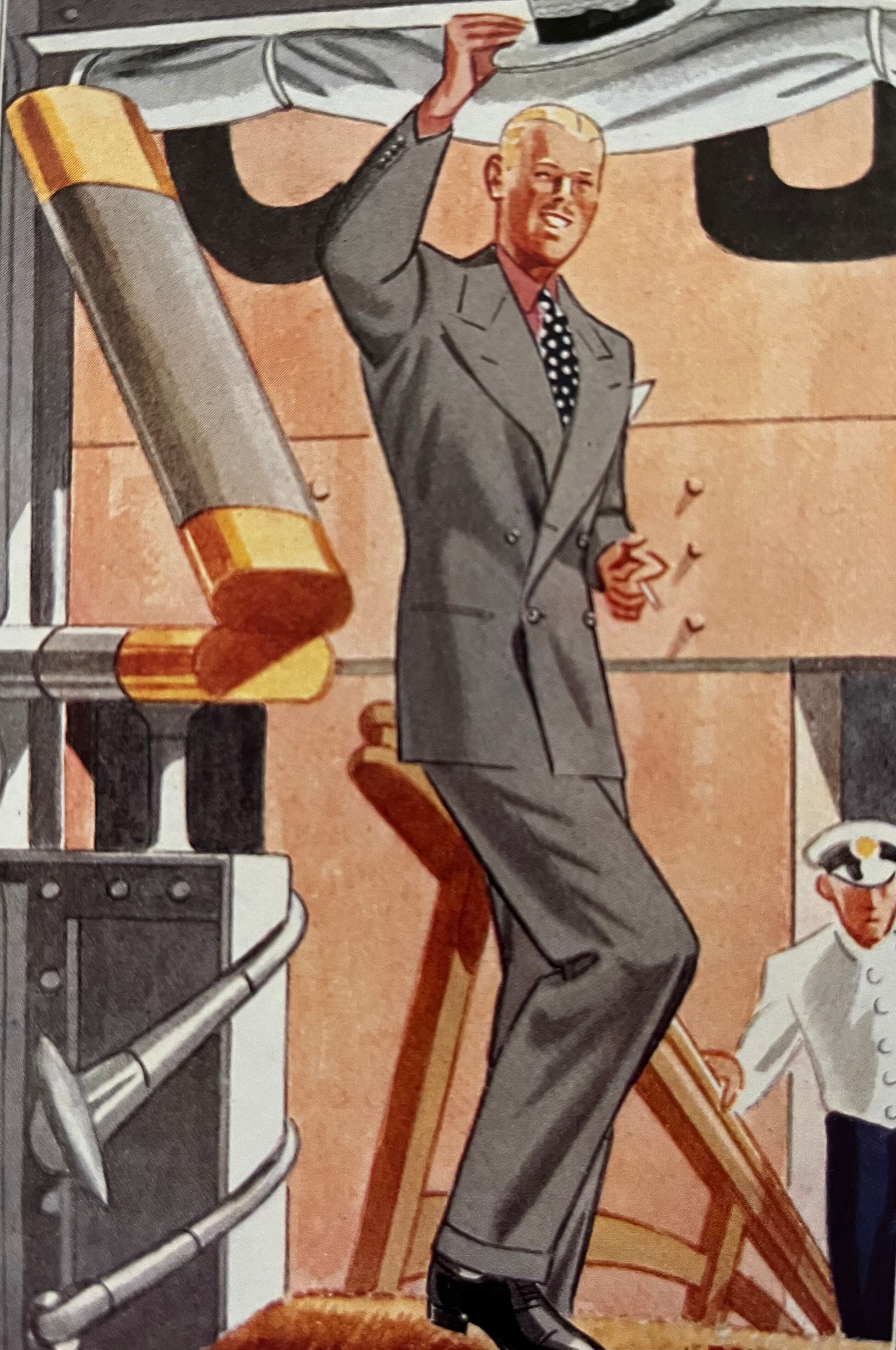これは1930年頃の仕様で、ネクタイが柔らかくドレープをつくる優雅さが特徴です。
