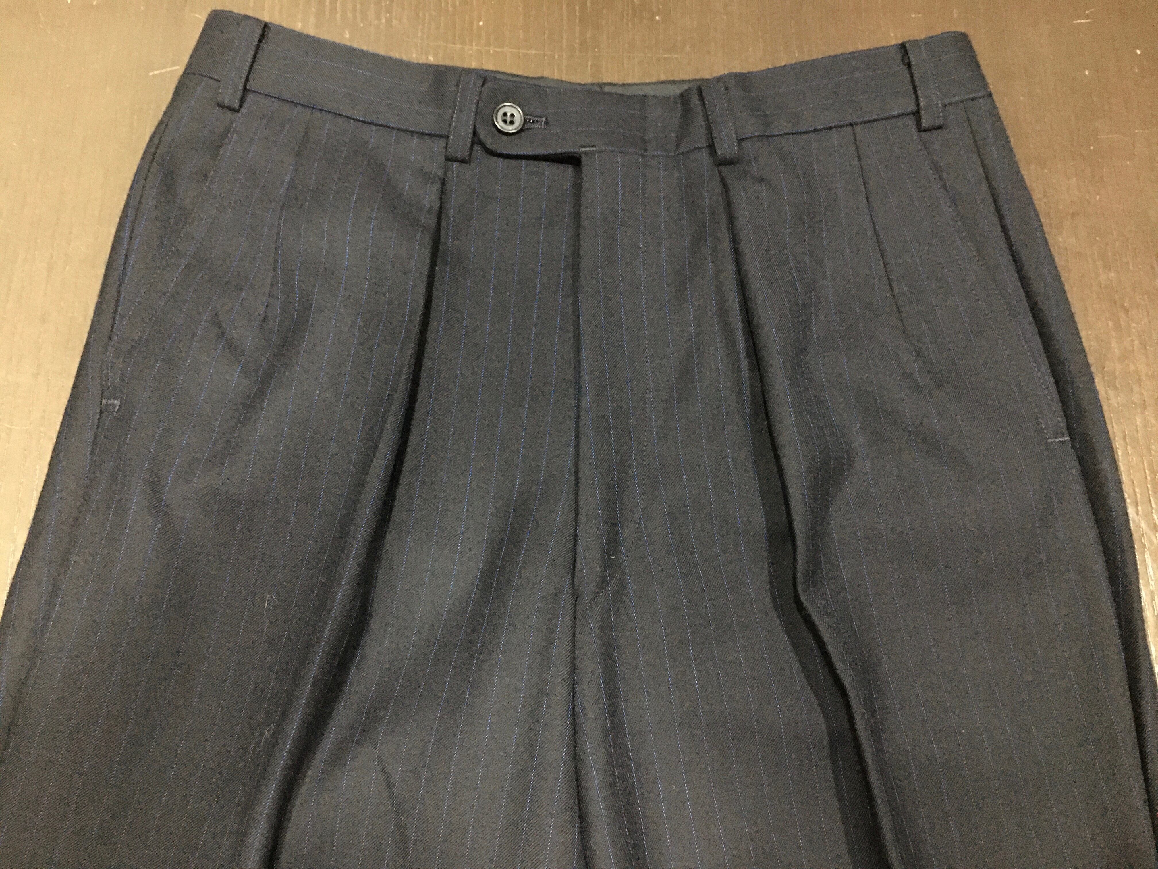 フォワード1プリーツ+1タック仕様。ベルトループ仕様。裾4.5cm幅ダブル仕様。