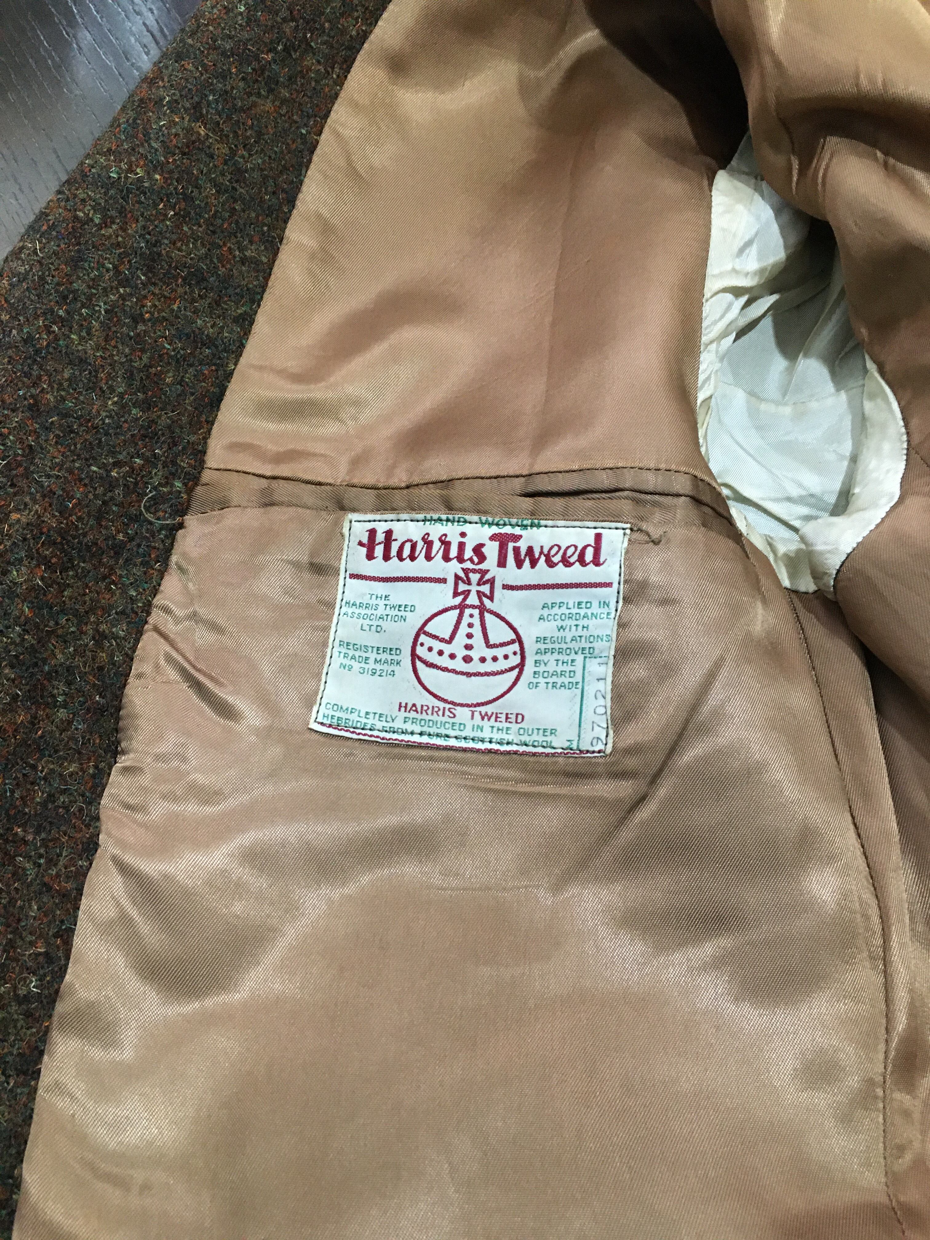 HarrisTweedにシリアルナンバーが刻印されている時代のもので、今とは全く違う重い重いハリスツイードです。
